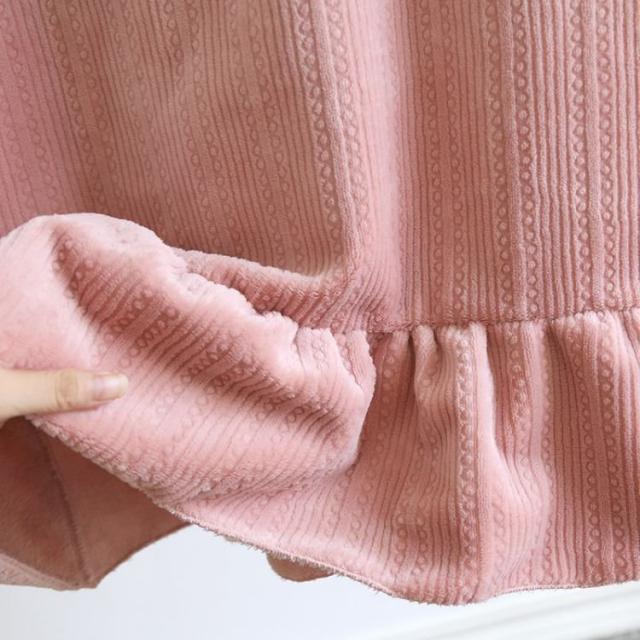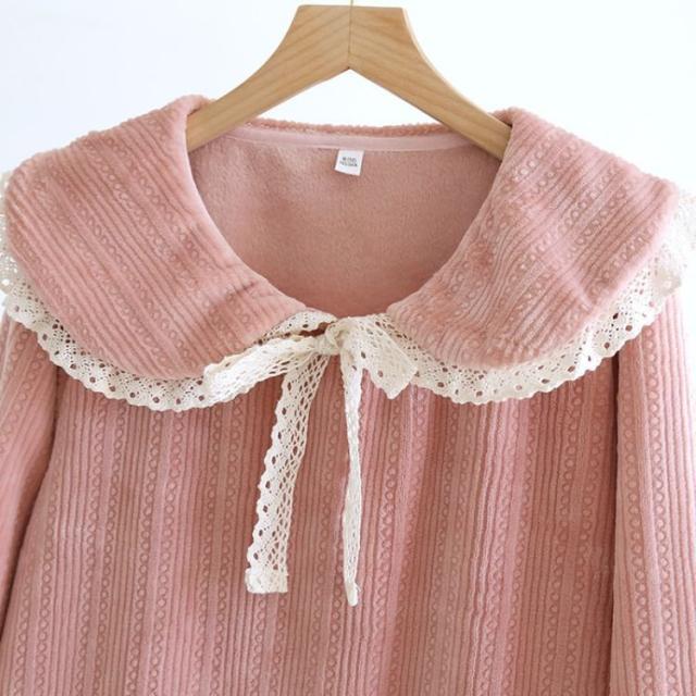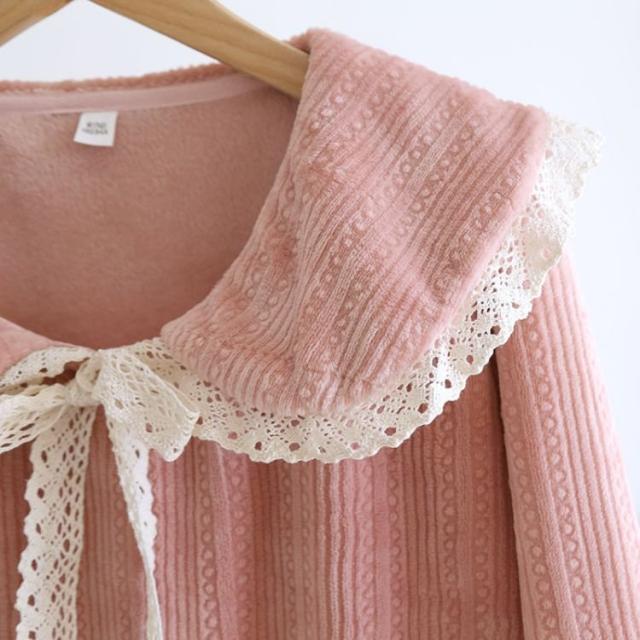 パジャマ レディース 厚手 秋 冬 長袖 ロング丈 ワンピース ネグリジェ フリースルームウエア 部屋着 寝巻 かわいい レース リボン かわいい おしゃれ ルーム