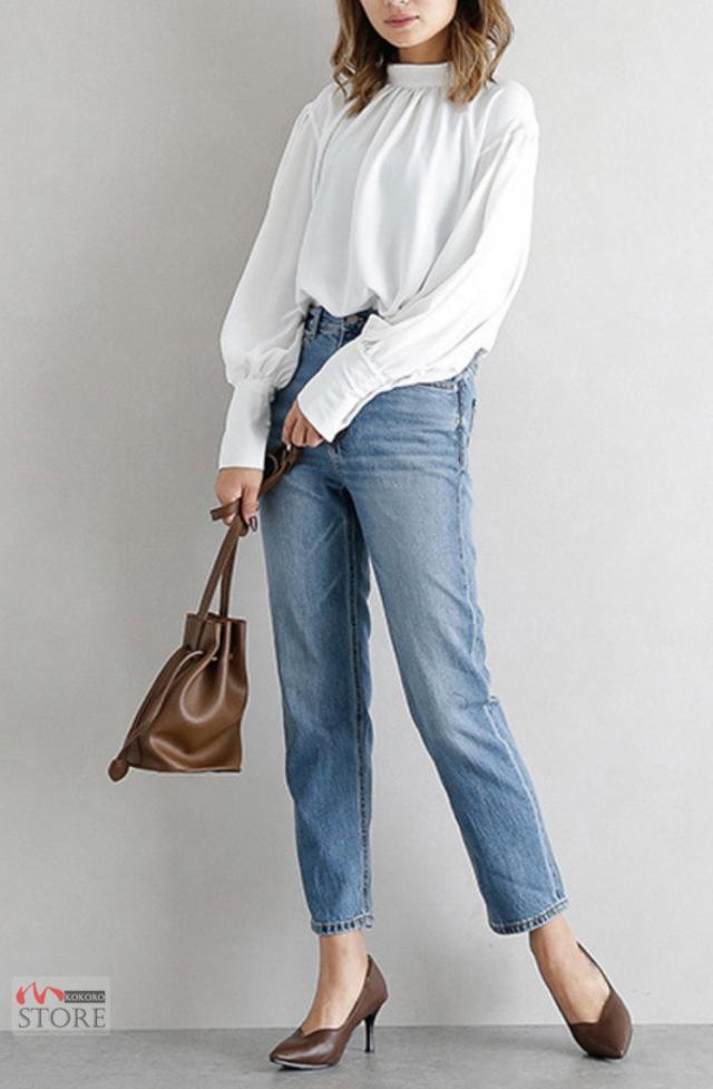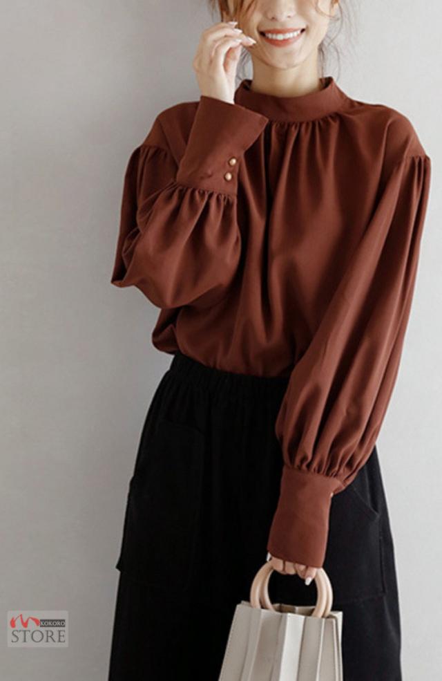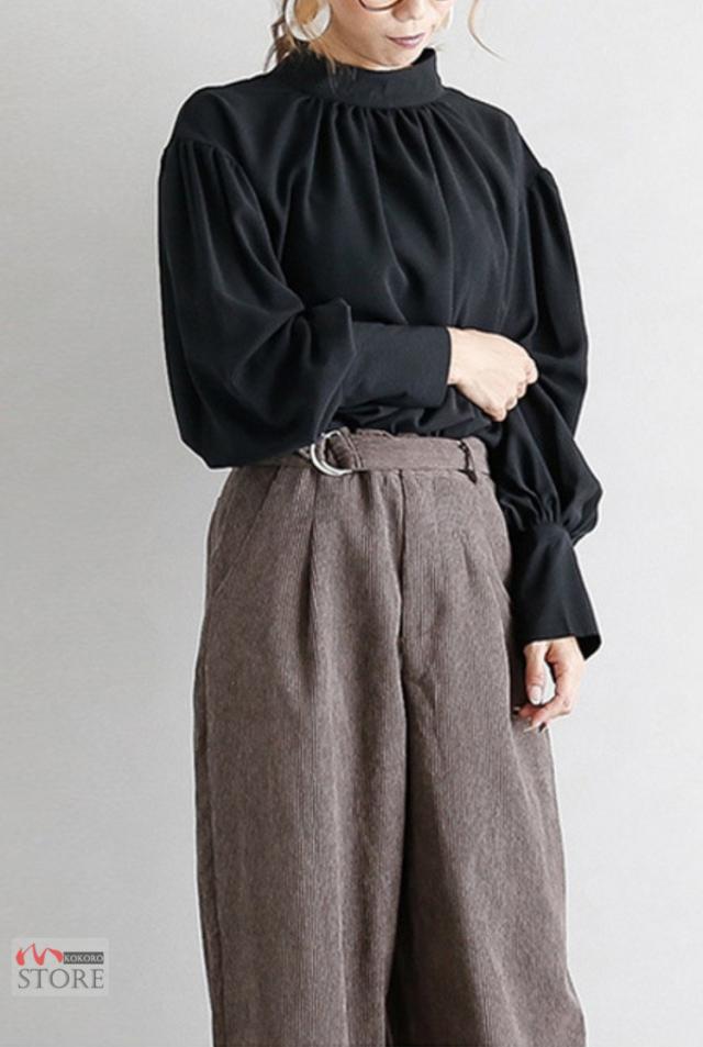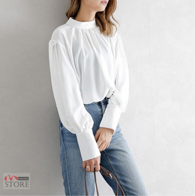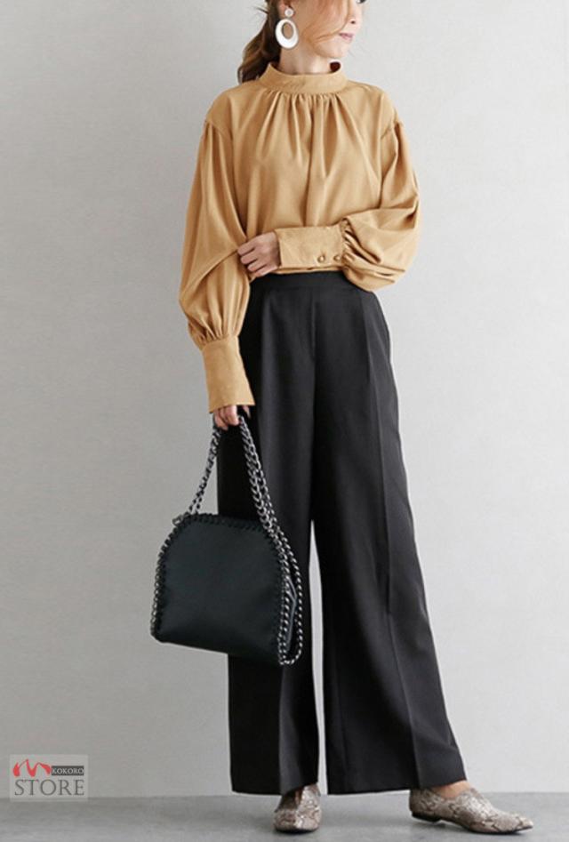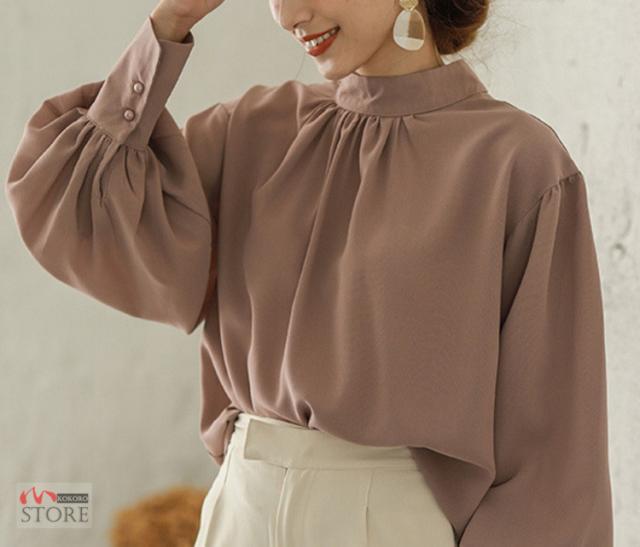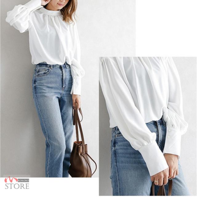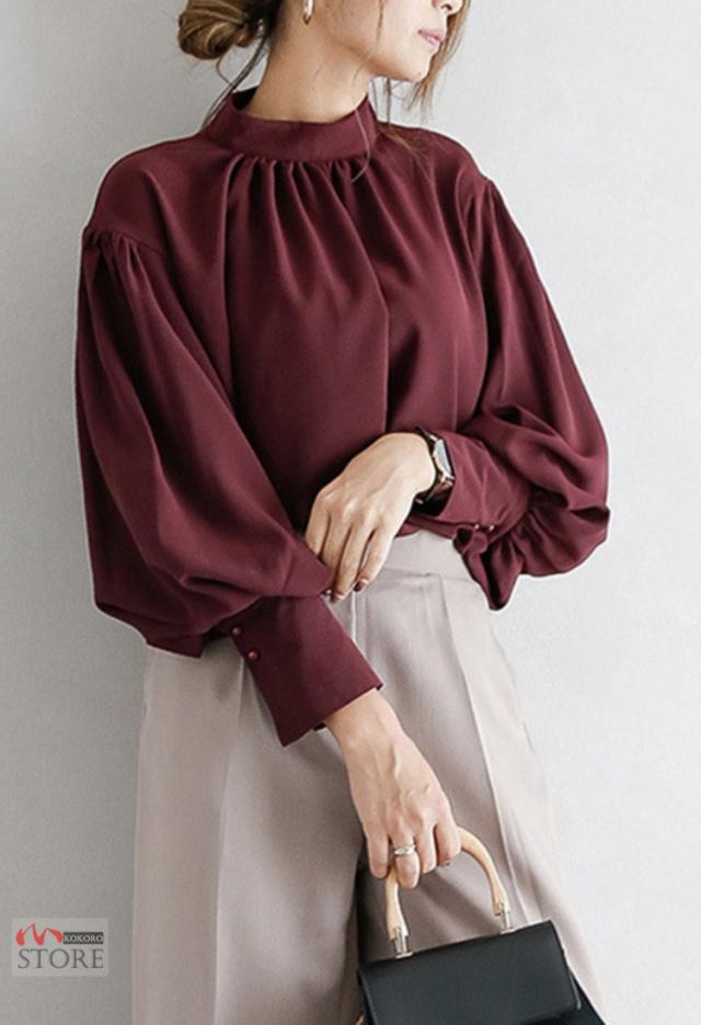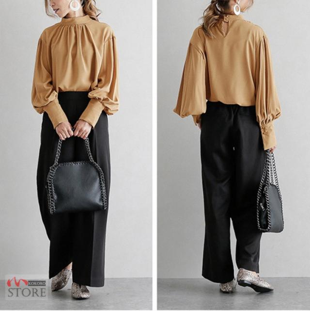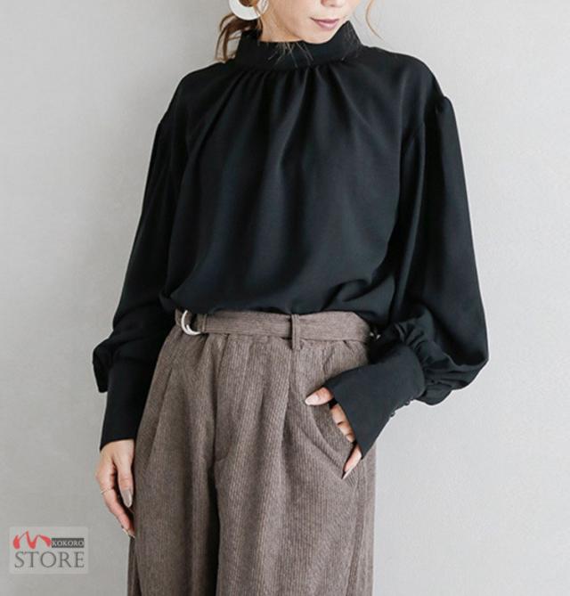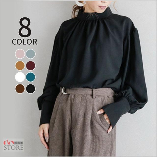 レディース シャツ ブラウス ハイネック 長袖 トップス オシャレ 通勤 ゆったり 大人 OL 秋 秋服