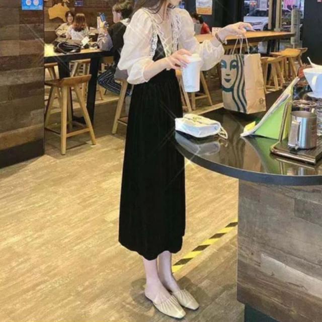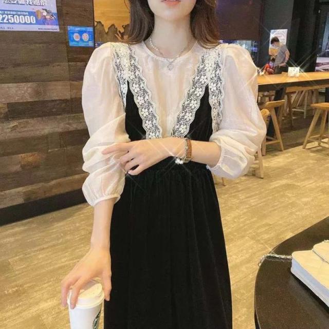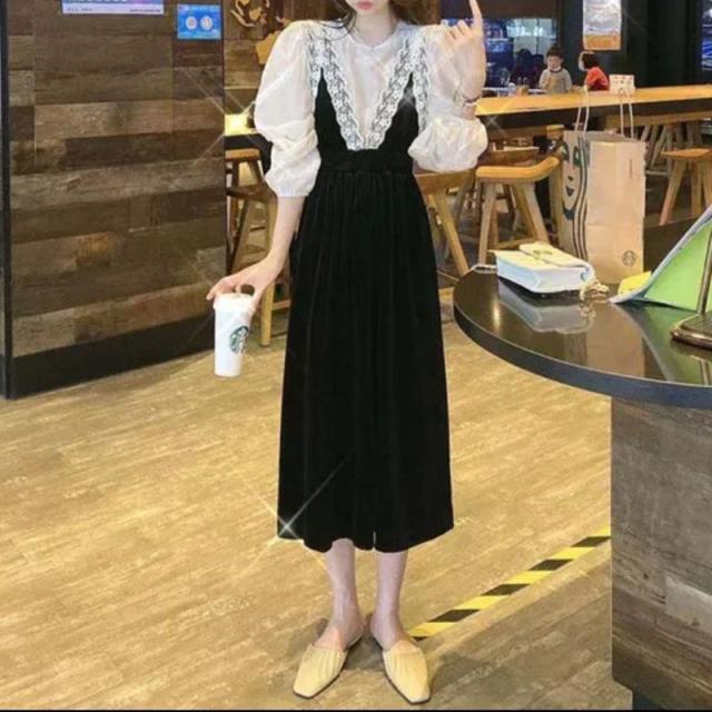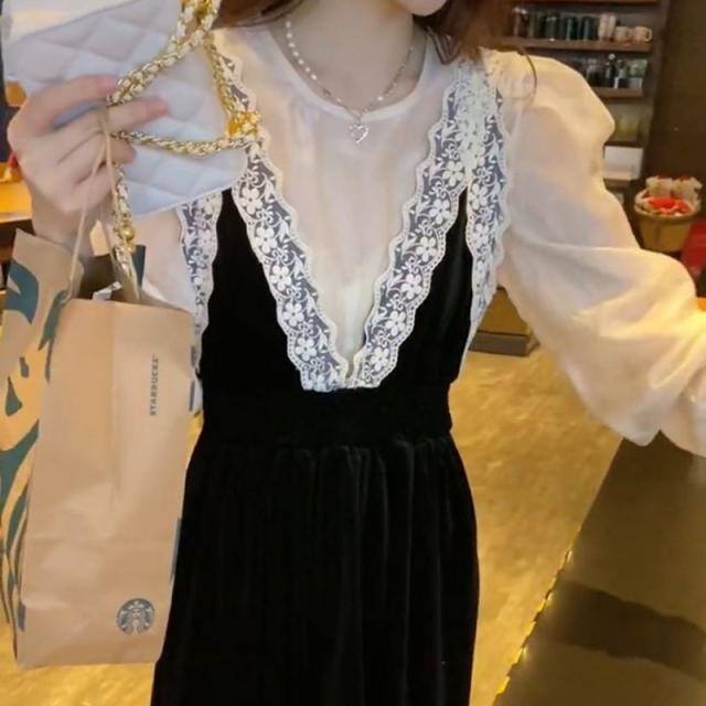 ワンピース 冬 ベルベット ロング ロング丈 長袖 ドレス ロングワンピース シフォン 春秋 セットアップ レース