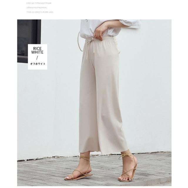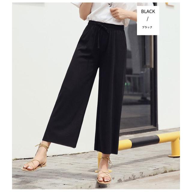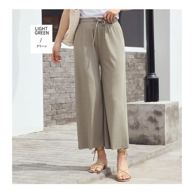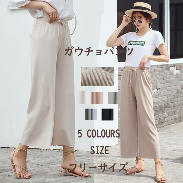 パンツ リゾートガウチョ ビーチ リボン ウエストゴム ガウチョパンツ ワイドパンツ ハイウエストパンツ テレワークファッション 在宅 夏 レディース