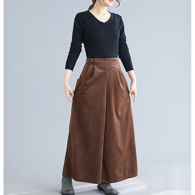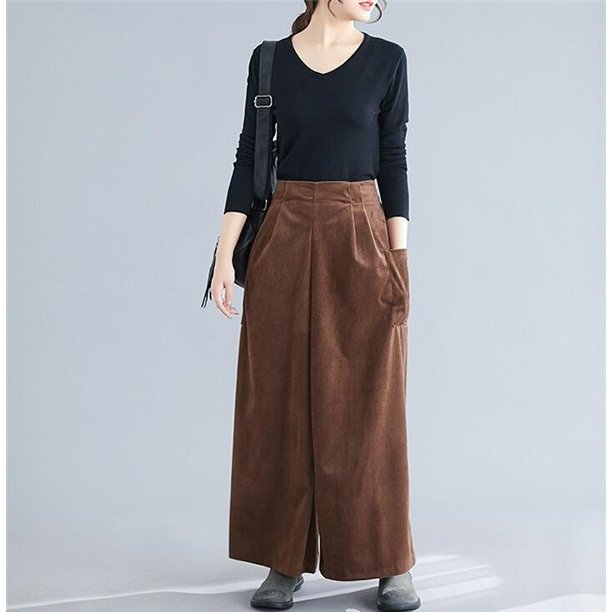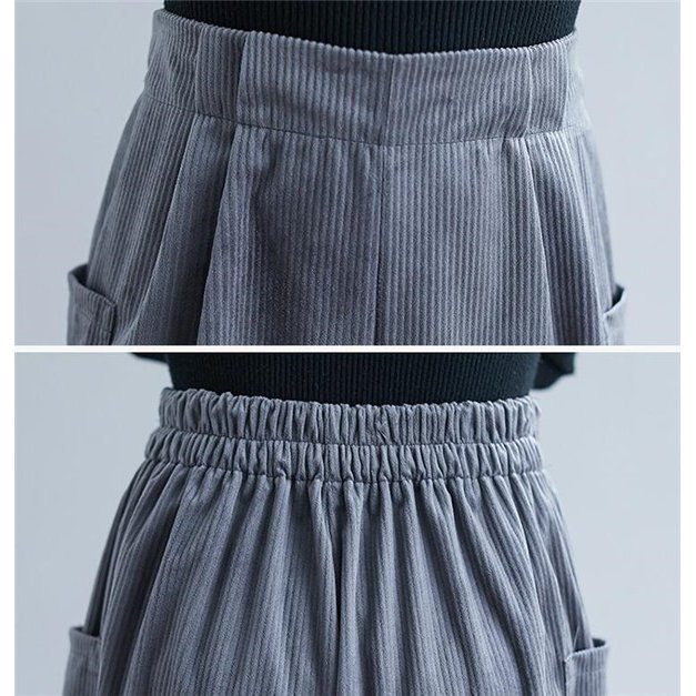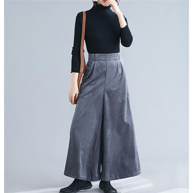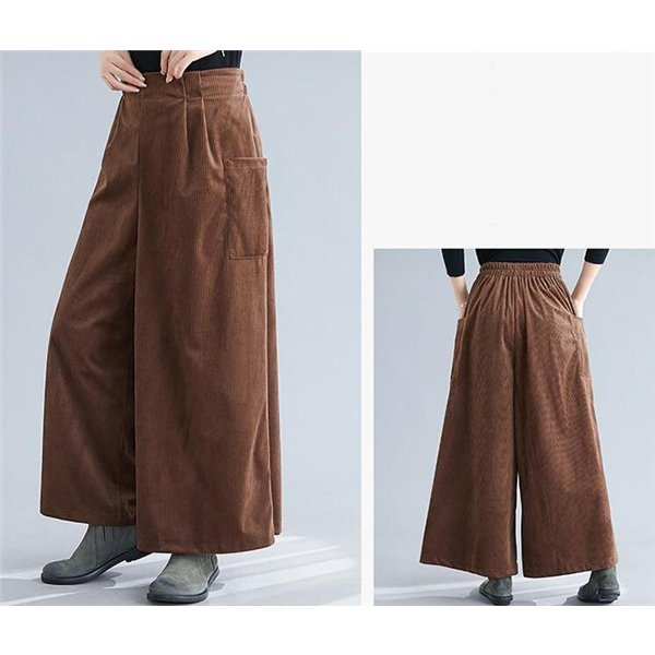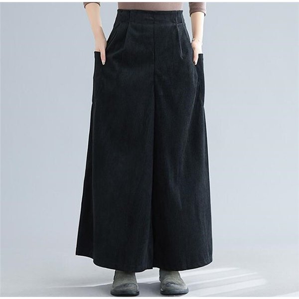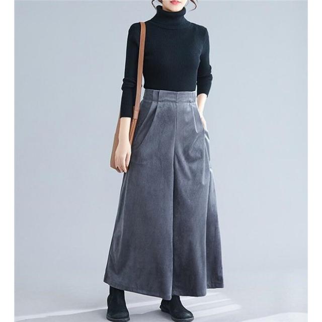 コーデュロイ ワイドパンツ ガウチョパンツ スカパン スカーチョ フレアパンツ ウエストゴム 9分丈 ロング 美脚