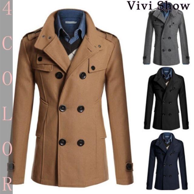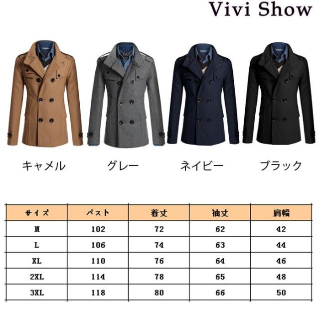 ピーコート Pコート メンズ コート ジャケット ウール ウールコート スリム ショート丈 秋冬