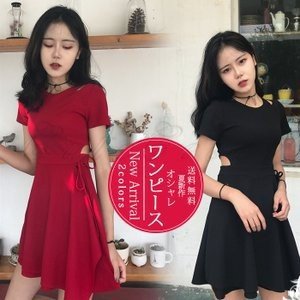 ワンピース レディース 半袖 ミニ丈 細身 着痩せ 無地 きれいめ 黒 赤 エレガント カジュアル 夏用 おしゃれ