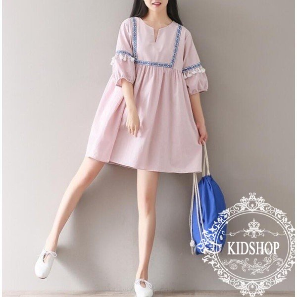 綿麻ワンピース 五分袖 クラシック Aライン レディース ミニ丈ワンピース 森ガール ゆったり カジュアル春夏 Vネック