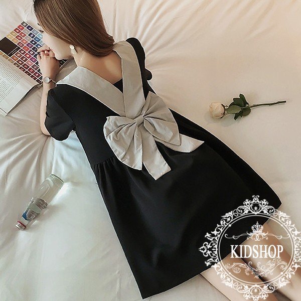 ワンピース レディース オシャレ マタニティ ショット ワンピ 黒 後ろリボン ゆったり 夏 韓国 おしゃれ 婦人服 大人可愛い