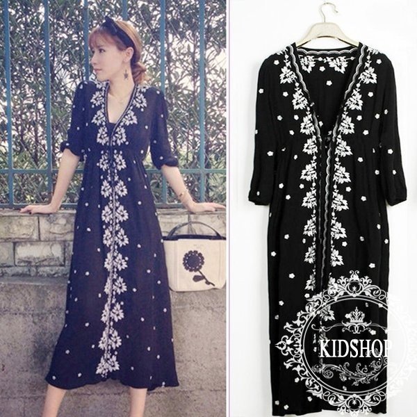 マキシワンピース 長袖 リゾートワンピース 結婚式 レディース ロングワンピース 刺繍柄 リネンワンピース シフォン