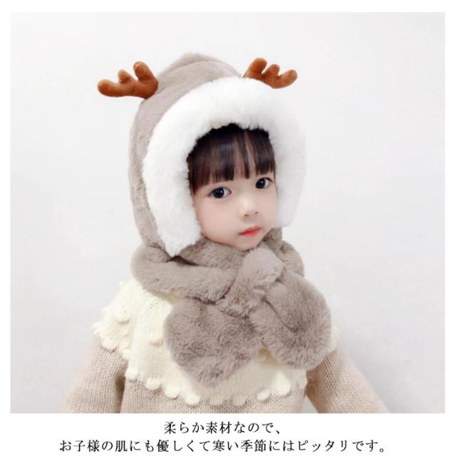 | 激萌え!いつまでも触れていたいマフラー付き帽子 柔らか素材なので、お子様の肌にも優しくて寒い季節にはピッタリです。 トナカイの角が、お子様のかわいらしさをさらに引き立てます! 寒い季節のお出かけにとっても頼りになるので、ママも子供も安心しておでかけを楽しめます | |
