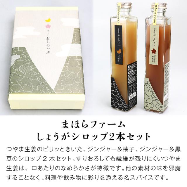 生姜シロップ 2本セット 津山しょうが 柚子 黒豆 岡山県産 津山 まほらファーム ジンジャー 贈答用 ギフト 産地直送 産直 常温便 同梱不可 指定日不可