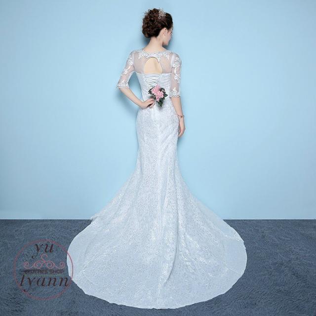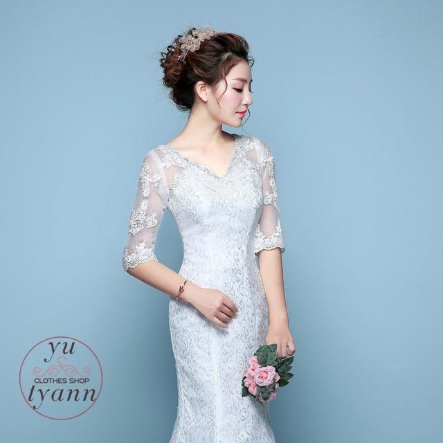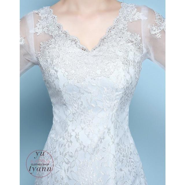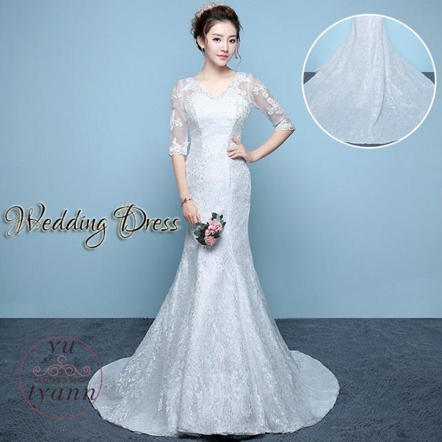 レディース ドレス マーメイドラインドレス 結婚式 二次会 ロングドレス トレーン 大きいサイズ Vネック 贅沢花嫁 編み上げ レース 花嫁ドレス 刺繍