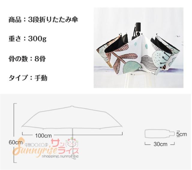 | サイズについての説明 | *骨の本数:8本 手動3段折りたたみ: *収納時全長:30cm *開く時直径:100cm *重さ:約300g |