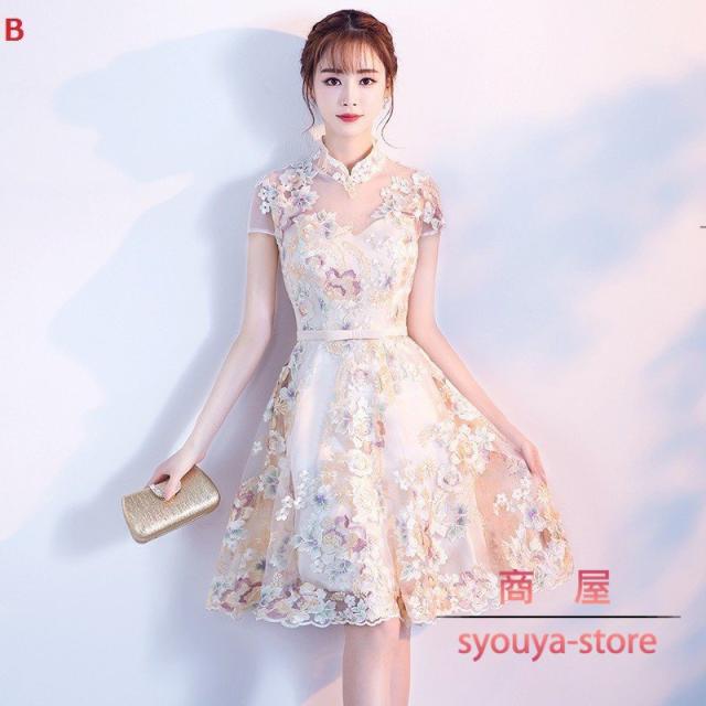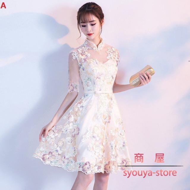 チャイナドレス お呼ばれ 秋 ドレス パーティ ウェディングドレス 大人 卒業式 膝丈ドレス ミニドレス 新品 ショート丈 結婚式 チャイナ風 少女 二次会ドレス