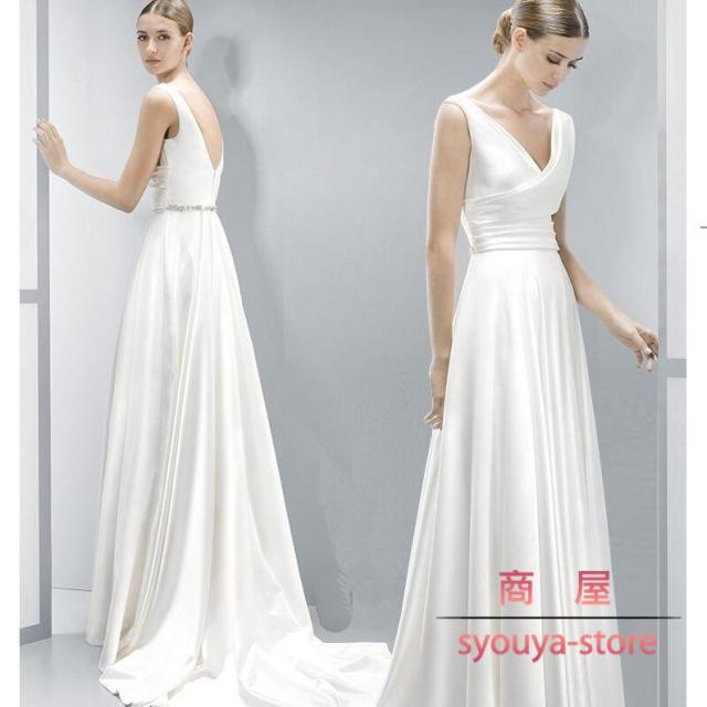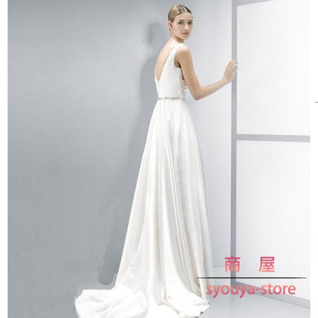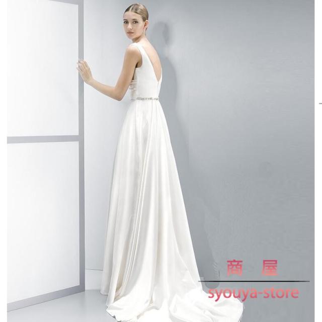 パーティードレス ピアノ発表会 演奏会用ドレス トレーンライン 花嫁 エンパイア 深いVネック ブライズメイド ワンピース 白 袖なし 大きいサイズ 二次会 結婚式