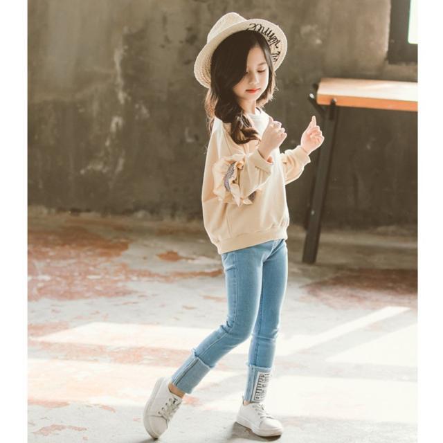 子供服 長袖 パーカー 上下セット ジャージ トップス デニムパンツ 可愛い 2点セット 女の子 お姫様 おしゃれ キッズ 春服