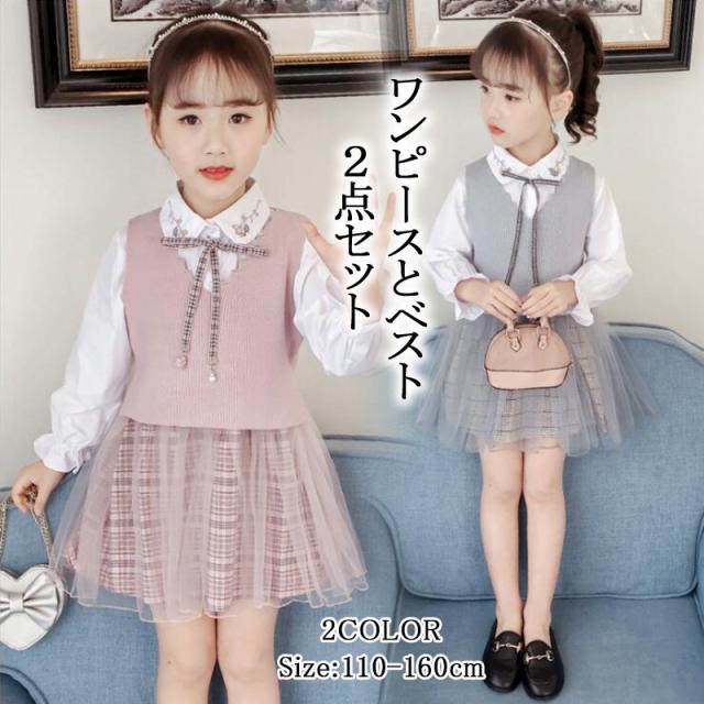 子供服 ワンピースセット ベスト 可愛い チュールワンピース セットアップ 入学式 発表会 卒業式 結婚式 ピアノ キッズ ドレス 春