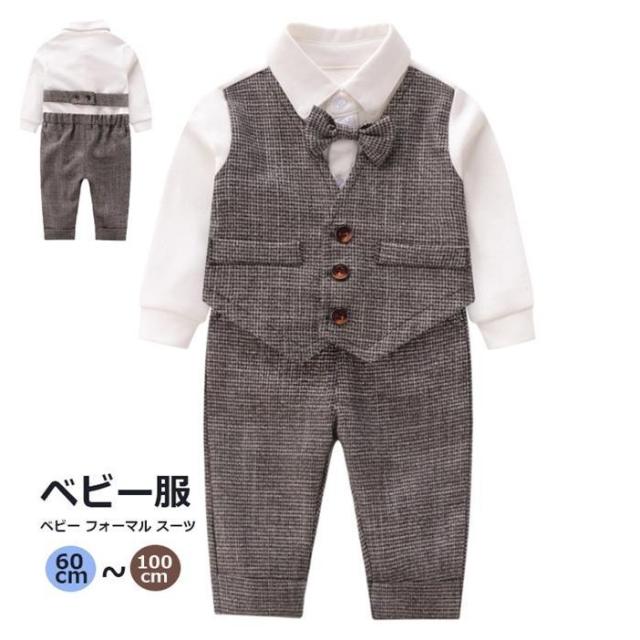 秋冬新作 子供服 男の子 ベビー フォーマル スーツ ベビー服 ロンパース 男の子 赤ちゃん 子供 蝶ネクタイ キッズ カバーオール おしゃれ 初節句 出産祝い 結婚