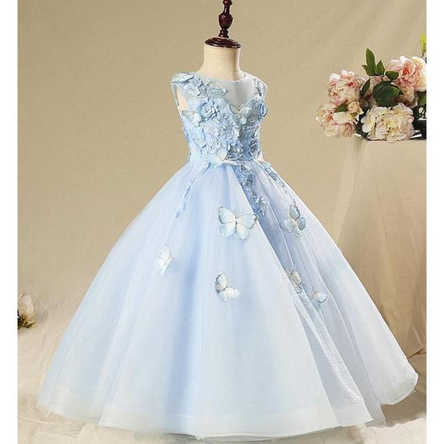 【?可愛い刺繍蝶付き!子供ドレス】ドレス 子供 発表会 女の子 結婚式 ロングドレス チュールスカート フォーマル ドレス 結婚式ワンピース ノースリーブ