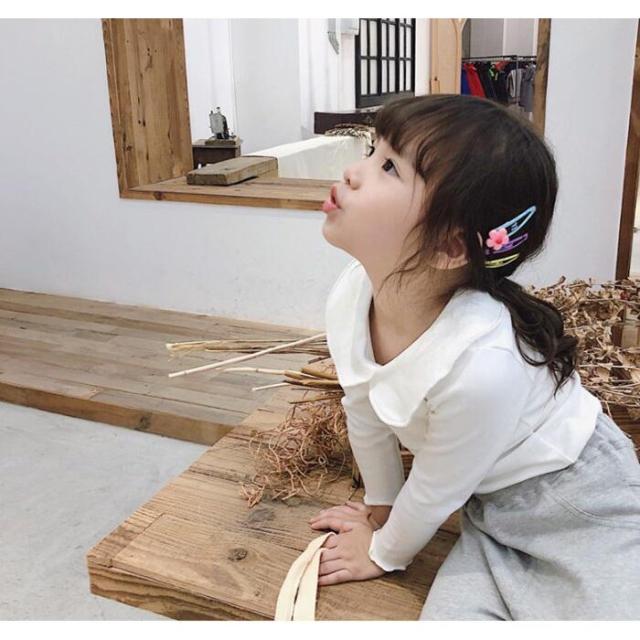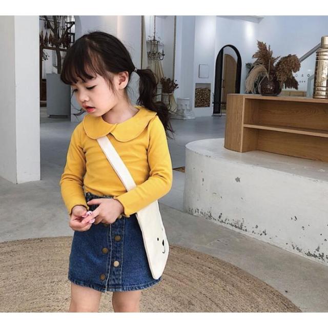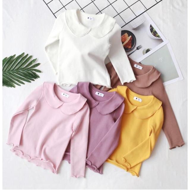 子供服 韓国人気!春新作 【カラフル 可愛いフレア襟 トップス 長袖 Tシャツ シャツ インナー キッズ服 カットソー 無地 長袖 キッズ 女の子 こど