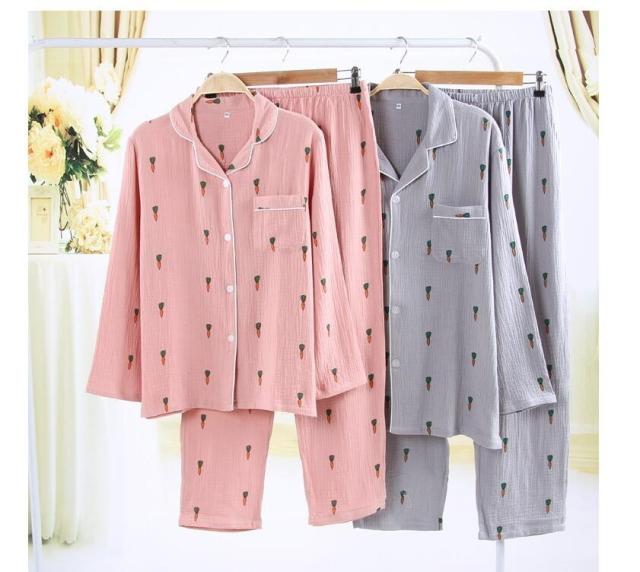 パジャマカップル メンズ+レディース 前開き 春夏秋 ペアルック 上下セット パジャマ レディースルームウエア 部屋着 女性用 男性用 ゆったり 寝巻き 新作