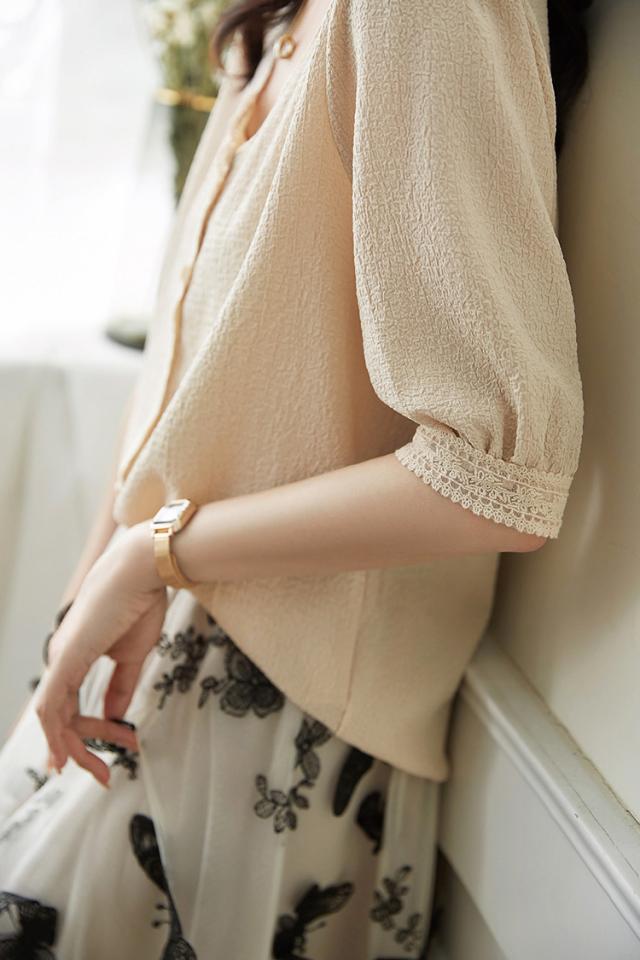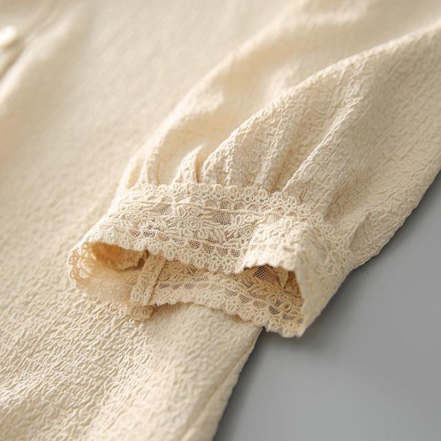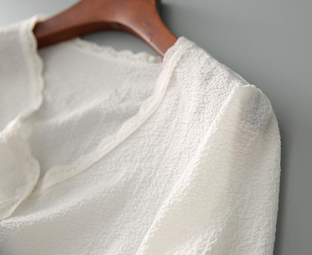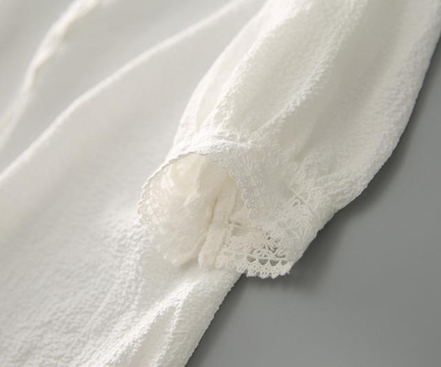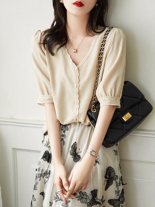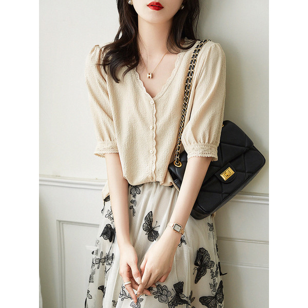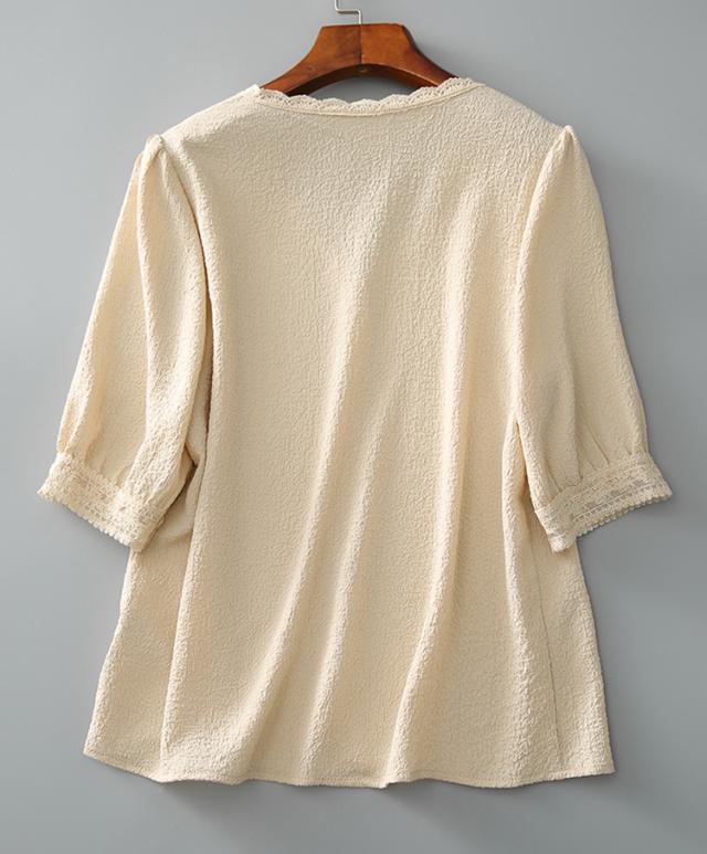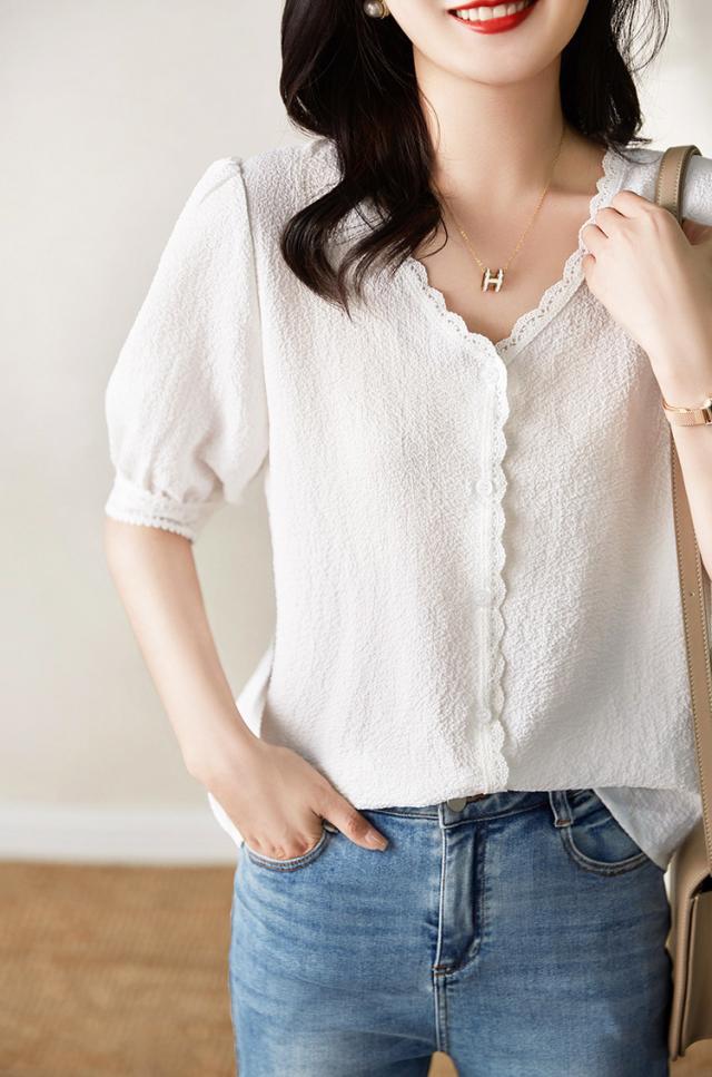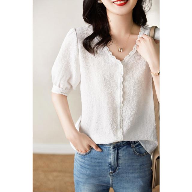 ブラウス レディース 40代 春夏秋新作 オシャレブラウス 白レースシャツ 半袖トップス シャツ Vネック パフスリーブブラウス ゆったりT 韓国風 大人 通勤