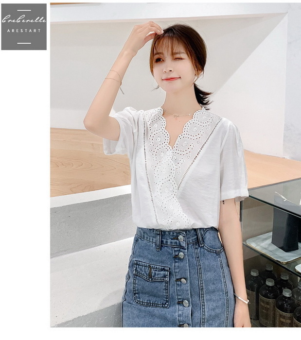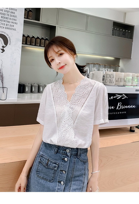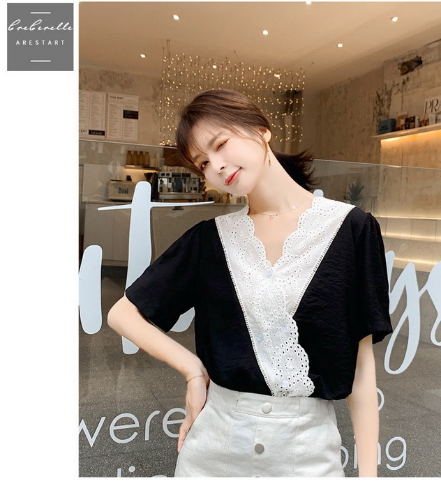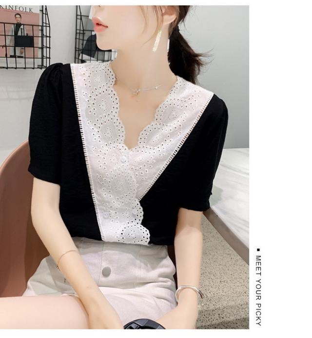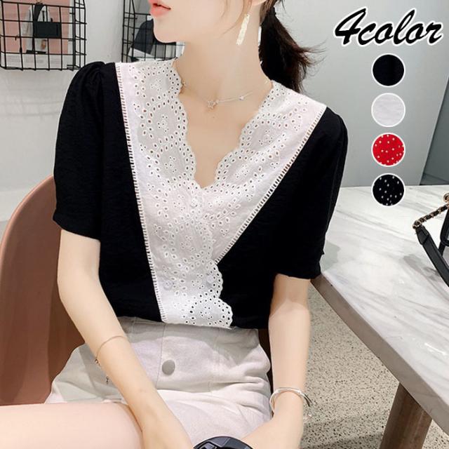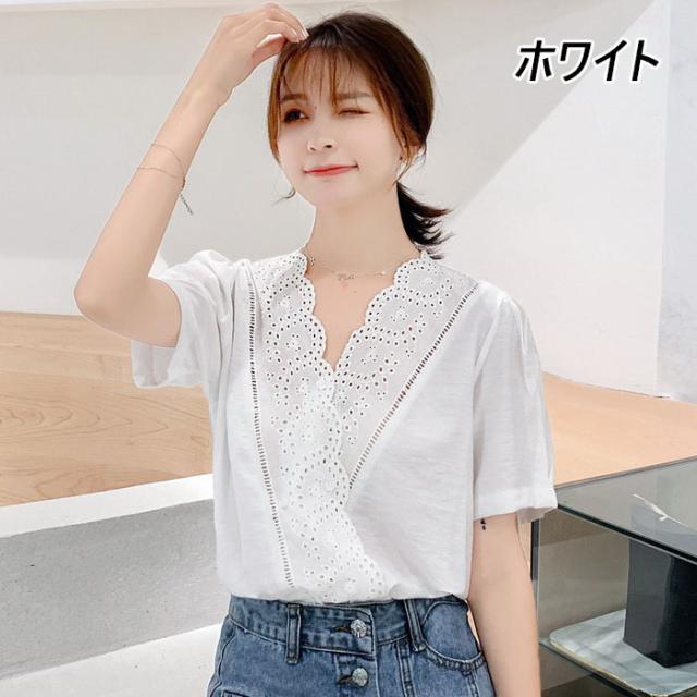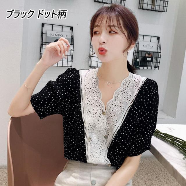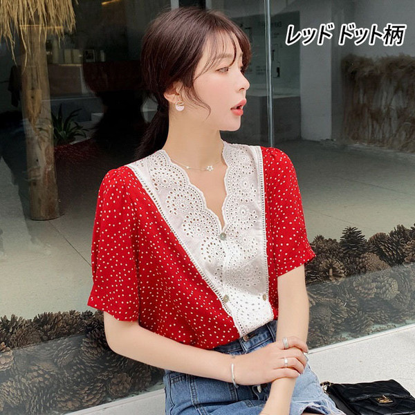 ブラウス レディース 40代 春夏 オシャレブラウス 半袖ブラウスVネック 30代 50代 ドット柄 ゆったりトップス 白シフォンブラウス 大人 配色 通勤OL おしゃれ