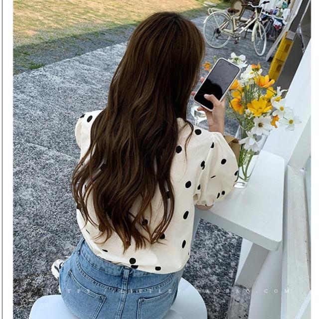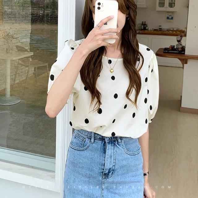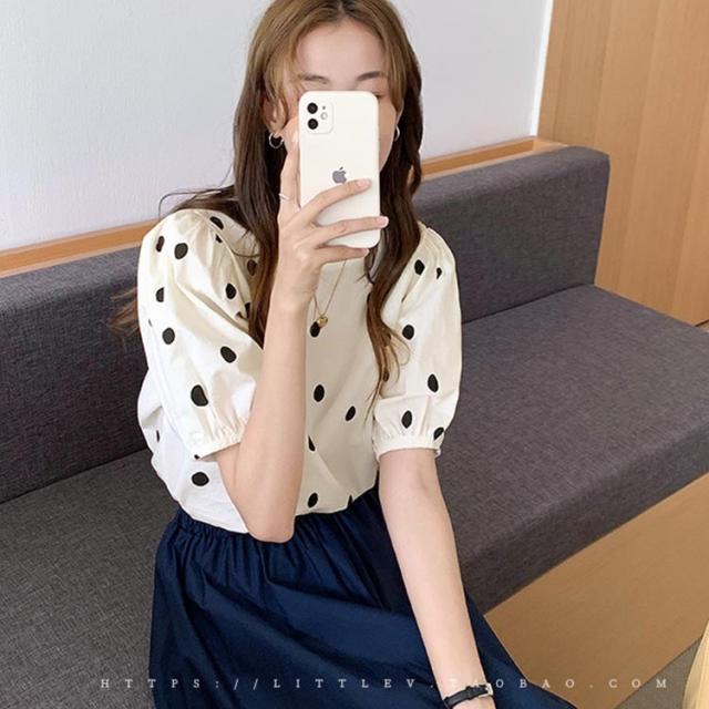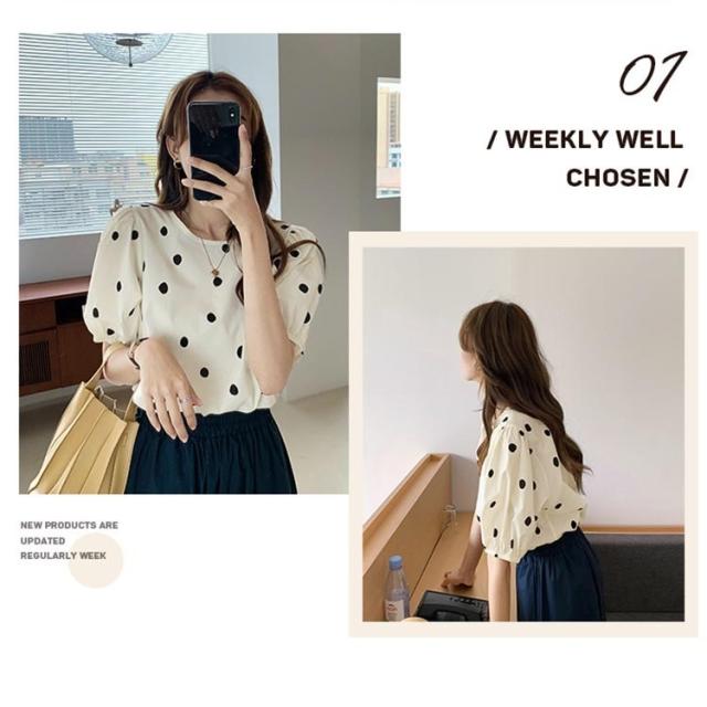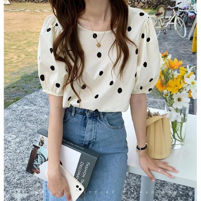 ブラウス レディース 春夏 おしゃれ 半袖 パフスリーブ シフォンブラウス 着痩せ 可愛い シャツ Tシャツトップス ドット柄 新作