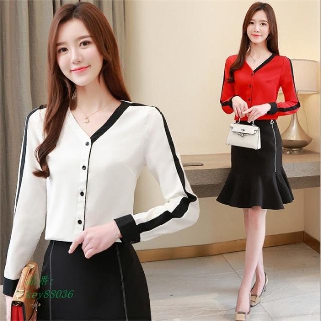 シャツ ブラウス レディース 長袖 トップス コーデ フォーマル 大きいサイズ きれいめ 着痩せ 通勤 大人 春シャツ 無地 Vネック シフォンブラウス 春 おしゃれ