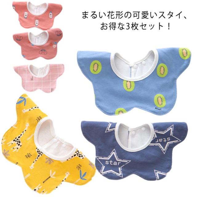 【送料無料】スタイ 赤ちゃん 丸タイプ よだれかけ ビブ 3枚セット かわいい 男の子 女の子 新生児 ベビー 出産祝い ギフト bib 綿素材 ビブ スナップボタン 保育園 入園準備 360度 ヨダレ お食事 防水 かわいい オシャレ 子供用