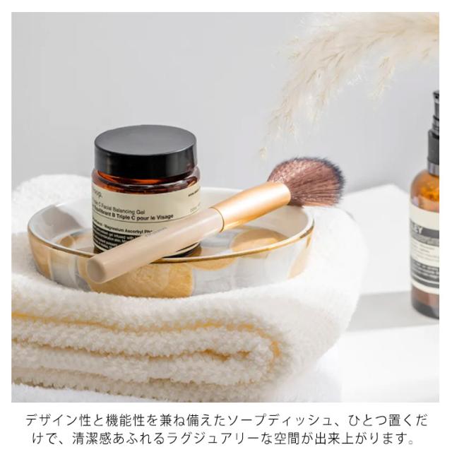 | マーブルのデザインの陶器ソープディッシュ。 無駄がなく洗練されたデザインに、さりげないマーブル模様が上品な印象を漂わせます。 ソープディッシュとしてはもちろん、 玄関先に印鑑やカギを入れておくトレイとしても活躍。 さらに贅沢に大理石を使用することで、ずっしりとした重みが生まれ重厚な仕上がりに。 大理石は切り出す場所によって色味や柄も個性豊か。 日用品なのに、清潔感と高級感を持ち合わせた美しい見た目はインテリアとして飾るようにお使いいただくのがおすすめ。 生活感を払拭し、まるで海外ホテルのようなラグジュアリーな空間を演出してくれます。 プラスチックなど軽い素材を使ったものに比べて、しっかりとした重さと安定感があるのも嬉しいポイント。 デザイン性と機能性を兼ね備えたソープディッシュ、ひとつ置くだけで、清潔感あふれるラグジュアリーな空間が出来上がります。 | |