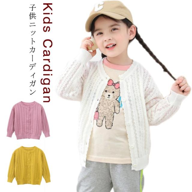 春 ニット カーディガン クールネック ニット カーディガン 丸首 キッズ カーディガン 長袖 ニットカーディガン 女の子 コットン 子供 ニット カーディガン Uネック 子供用 トップス ニットウエア 子供服 かわいい 幼稚園 保育園 新入園 通園 送料無料