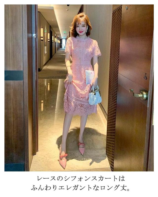 | 結婚式などパーティシーンにぴったりのドレスです。 レースから覗く肌見せが大人っぽい、華やかな花柄レースの袖。 高め位置にウエストがあり、スラリとスタイルよく見せます。 レースのシフォンスカートは ふんわりエレガントなロング丈。 個性的なデザインが魅力の一着。 | |