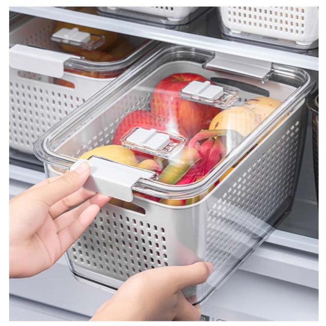 保存容器 水切り 水切り型保存容器 バルブ付き 角型 密閉容器 冷蔵庫収納 漏れない 野菜 果物 収納 フタ付き キッチン 透明