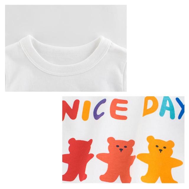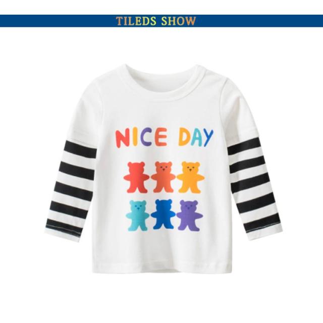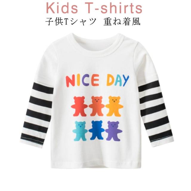 子供Tシャツ クールネック クマ 女の子 Tシャツ 重ね着風 長袖Tシャツ 英文字 キッズ Tシャツ フェイクレイヤード風 子供 Tシャツ インナー カットソー 長袖 Uネック トップス 長袖 丸首 春 秋 子供服 かわいい 幼稚園 保育園 新入園 新入学 通園 送料無料