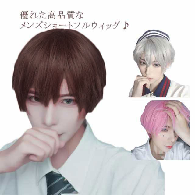 メンズ ショート ウィッグ 送料無料 男装 コスプレ かつら フルウィッグ ピン/ネット付き 自然 ミディショート レディース ハロウィン カツラ 短い髪 変装 日常用 短髪 cosplay 仕事 面接 紳士