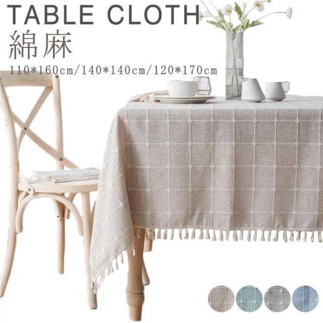 テーブルクロス 食卓カバー 北欧 110*160cm 140*140cm 120*170cm テーブルクロス 綿麻 リネン 長方形 正方形 テーブル クロス タッセル付き デスクカバー ダイニング キッチン テーブルカ机カバー 汚れ防止 洗える ナチュラル 家庭用 業務用 送料無料