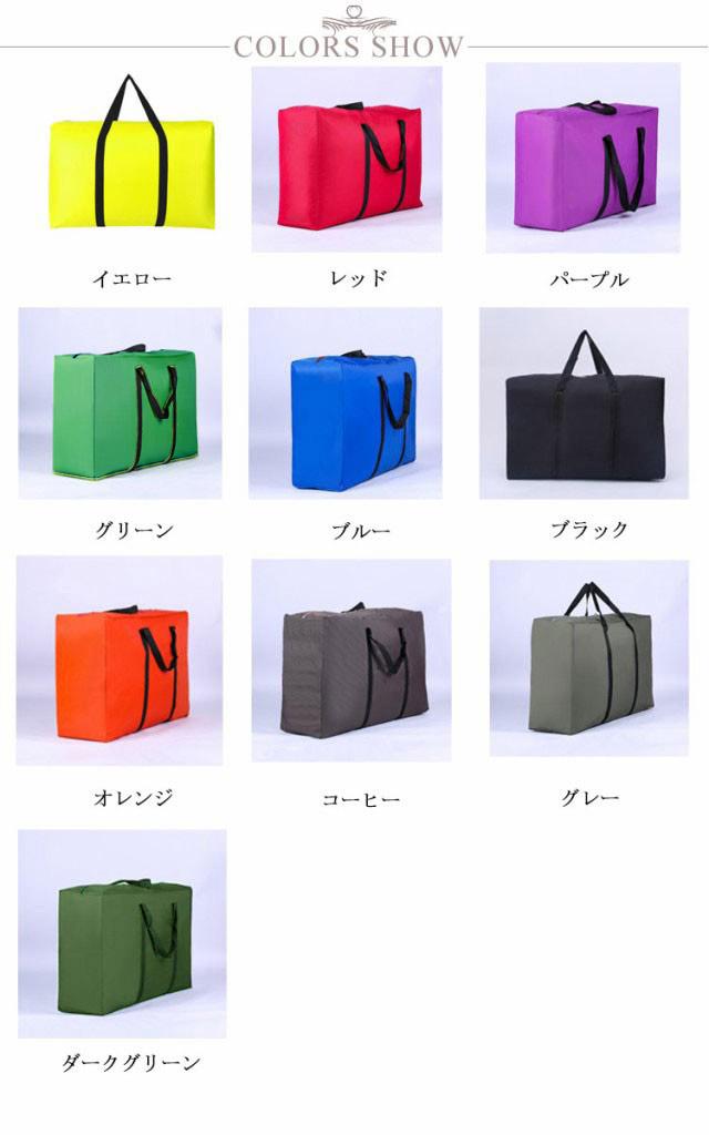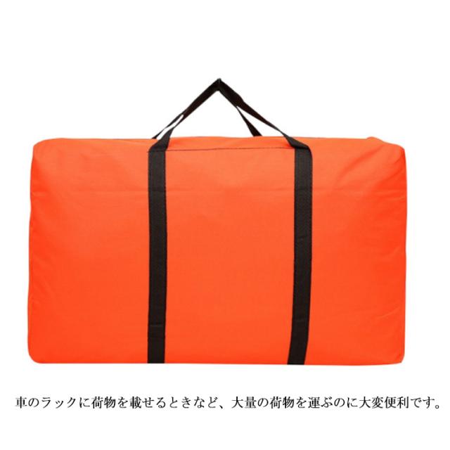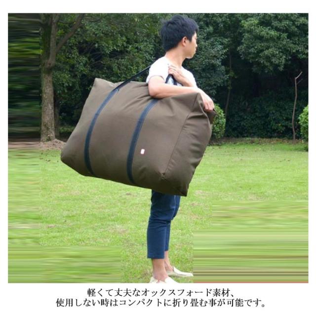 | 旅行や引っ越し、入退院時やクリーニング店の往復など、様々なシーンで活躍する大型バッグ。 大きさにはゆとりがあるので冬用の分厚い掛け布団も敷布団と共に余裕で入ります。 軽くて丈夫なオックスフォード素材、使用しない時はコンパクトに折り畳む事が可能です。 車のラックに荷物を載せるときなど、大量の荷物を運ぶのに大変便利です。 豊富なサイズ&色展開、多用途にお使いいただけます。 | |