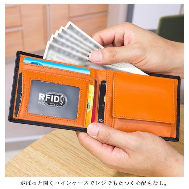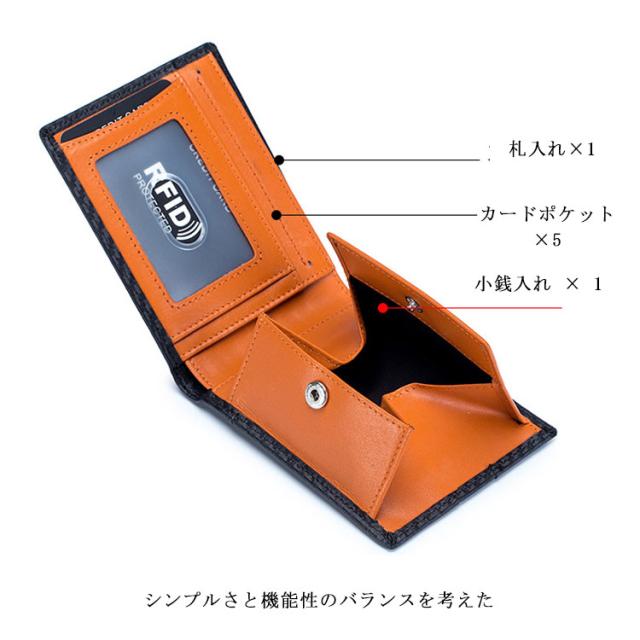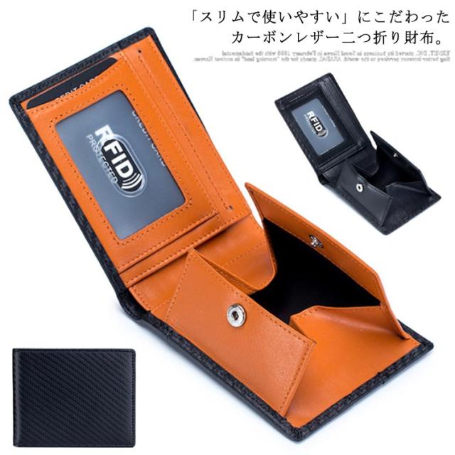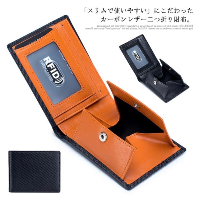 財布 メンズ 二つ折り スキミング防止 送料無料 box型小銭入れ 二つ折り財布 薄い 男性 スリムタイプ カーボンレザー コインケース カード入れ 軽量 大容量 使いやすい プレゼント