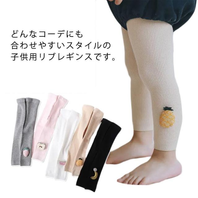 子供服 リブ レギンス 送料無料 9分丈 レギンスパンツ キッズ こども レギパン 女の子 春秋 ボトムス ウエストゴム ストレッチ 長ズボン フルーツデザイン ジュニア かわいい カジュアル