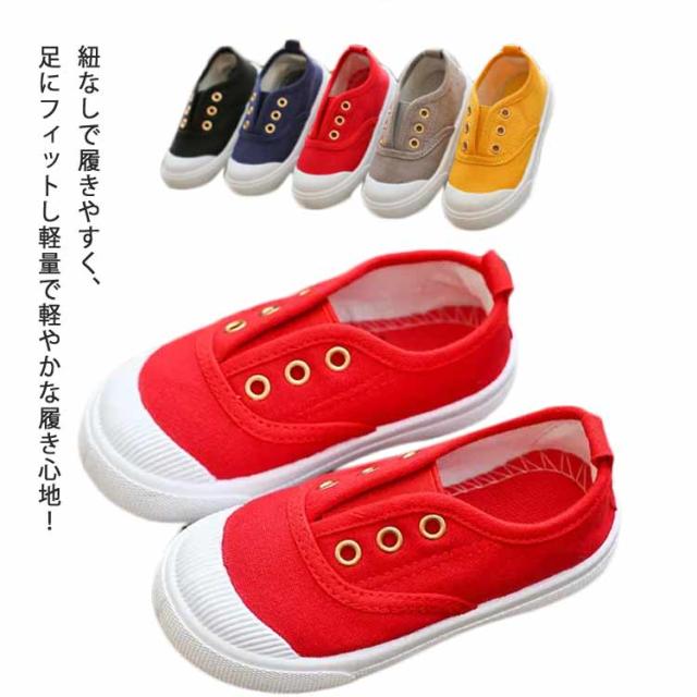紐なし スリッポン キッズ スニーカー 子供靴 子供用 シューズ シンプル キャンバス素材 無地 履きやすい 動きやすい 春 夏 秋 上履き 保育園 幼稚園