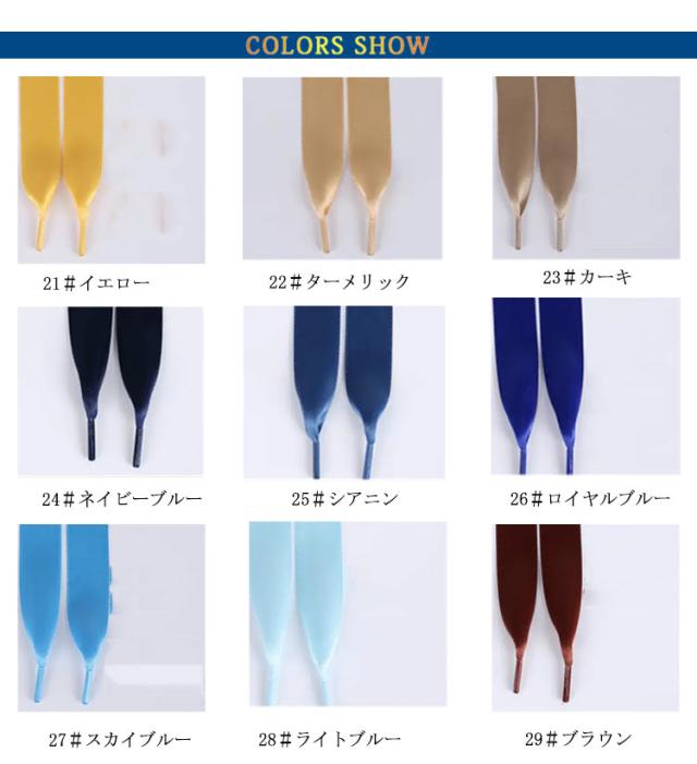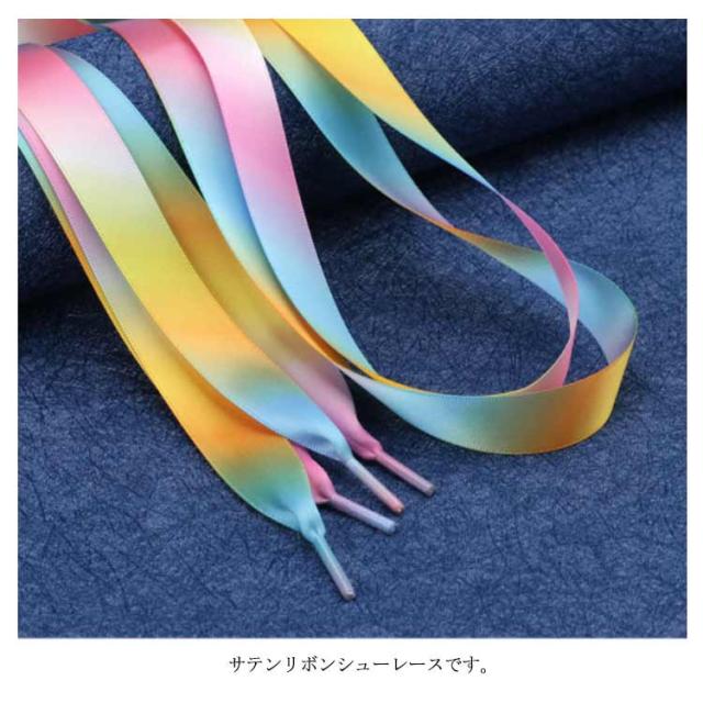 紐 靴ひも リボン りぼん サテン シューレース サテンリボン 2本組 くつひも スニーカー シューズ 靴 手芸 ヘアーアクセ カラフル ブルー イエロー 推し ヘアアクセサリー カラー 文化祭 学園わいい おしゃれ