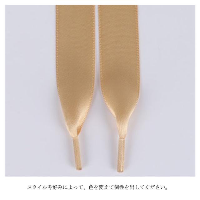 | サテンリボンシューレースです。 靴のイメージを変えたり、ヘタってしまったシューレース(靴ひも)の替えにも♪ 上から穴1・2つ開けて結ぶと、リボン結びの強調できる長さになります。 スタイルや好みによって、色を変えて個性を出してください。 | |