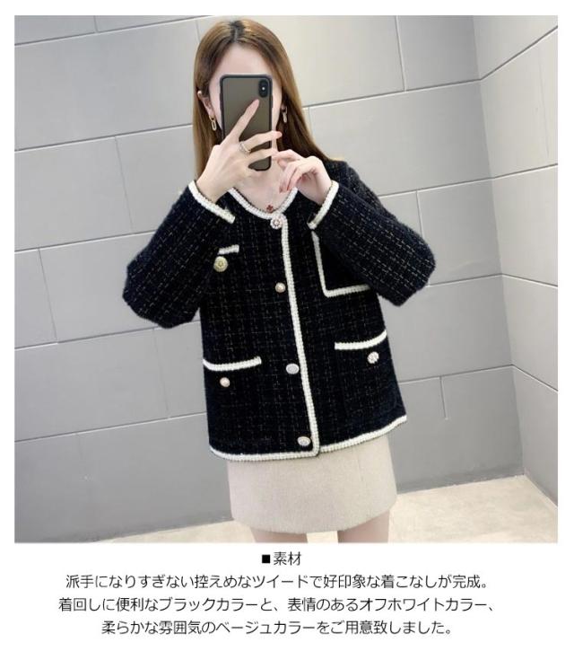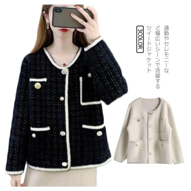 ジャケット レディース ノーカラー 長袖 スーツ ツイード ノーカラー ツイードジャケット ノーカラージャケット セレモニー アウター 羽織り カーディガン 長袖 襟なし 通勤着 着回し 着痩せ シンプル ラメ フォーマル ママ フォーマル 入学験 黒