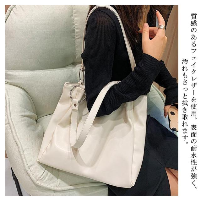 | 便利性とオシャレ感を兼ね備えたトートバッグ たっぷりの内側ポケット、化粧品の入るもラクラク! 質感のあるフェイクレザーを使用、表面の耐水性が強く、汚れもさっと拭き取れます。 雑誌、ポーチ、財布など、デイリーユースをすっぽり収納!幅広マチで抜群の収納力、通勤から普段使いまで幅広く使えて実用的です。 無駄なものを省いたシンプルですっきりとしたデザインなのでどんなコーデも合わせやすく使いやすいのもうれしいポイント! | |