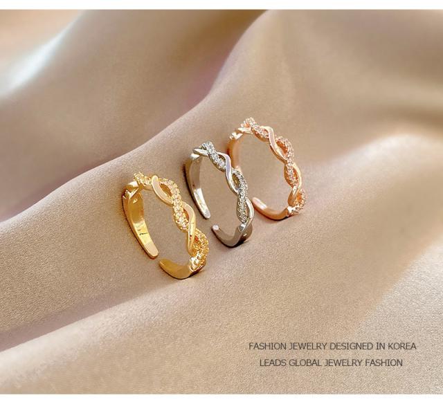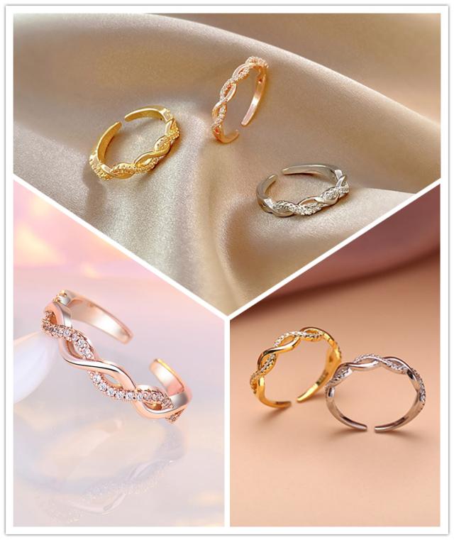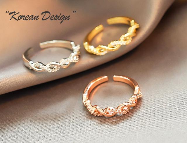 指輪 フリーサイズ リング レディース ねじり ツイスト 交差 クロス 編み込み キュービックジルコニア 10号 11号 12号 13号 14号 15号 16号 17号 18kコーティング ゴールド プラチナ ピンクゴールド 重ね付け 華奢 おしゃれ プレゼント 送料無料