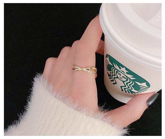 指輪 レディース リング 交差 CZダイヤ 金属アレルギー対応 ポイント消化 誕生日 プレゼント