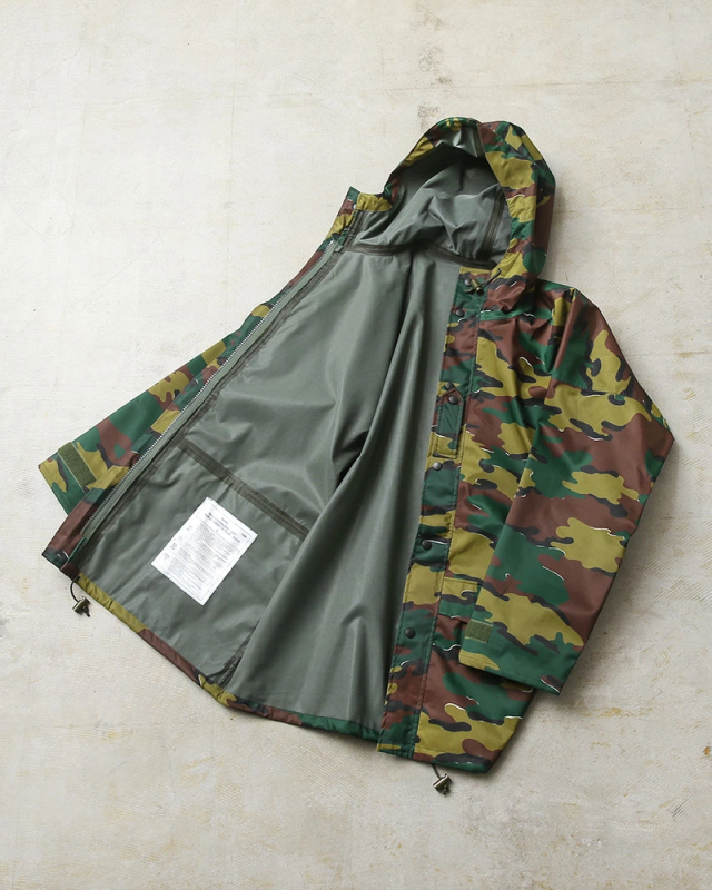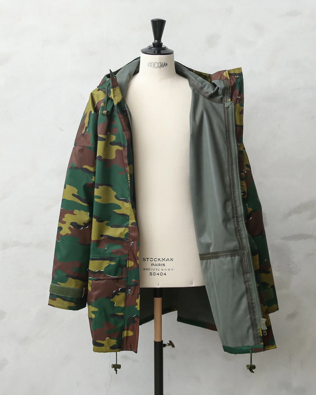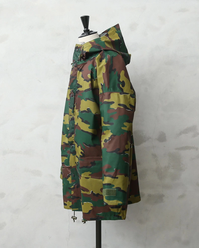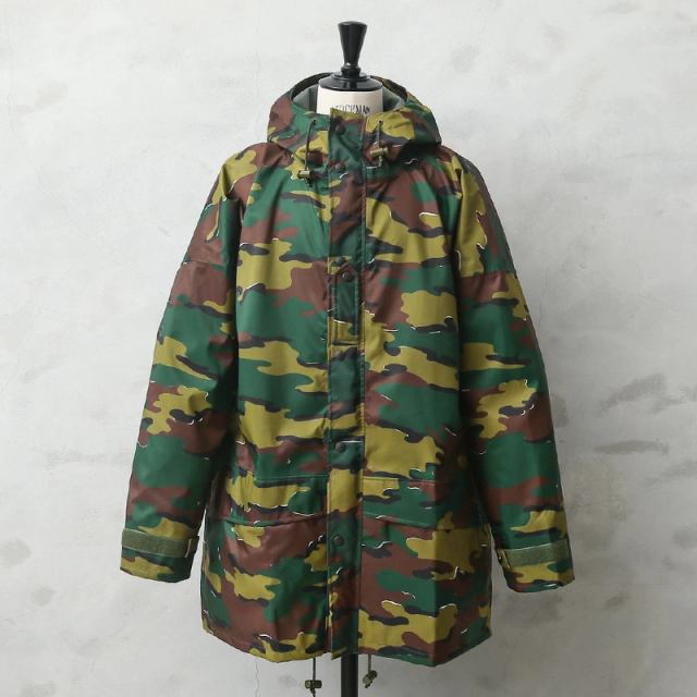 ベルギー軍より90年代後半に採用された透湿防水タイプの機能性に優れたフィールドパーカーが入荷!圧倒的な人気を誇る米軍の“ECWCS パーカー”と同じような環境下で使用されるアイテムの希少なデッドストックです!シェルは撥水素材で裏地は内側からの水蒸気を逃し、雨などの水滴は通さない事でドライな状態を保ち、風を通さないことで保温性も向上させる高機能素材の透湿性防水生地を使用しています。縫製部分は裏側からシームテープ処理が施されています。