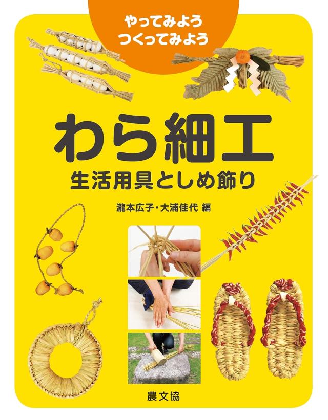 わらってなあに?どう使ってきた?日本のくらしを支えてきたわらを知り、手仕事の技を伝承。イネの刈り取り・乾燥からわらの下準備、つるし唐辛子、卵つと、鍋敷き、わらぐつ、しめ飾りなど14作品のつくり方まで。