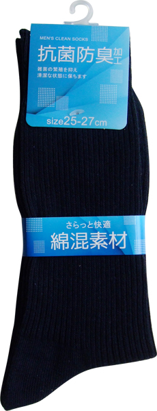 ●品名・紳士 綿混抗菌防臭無地リブソックス