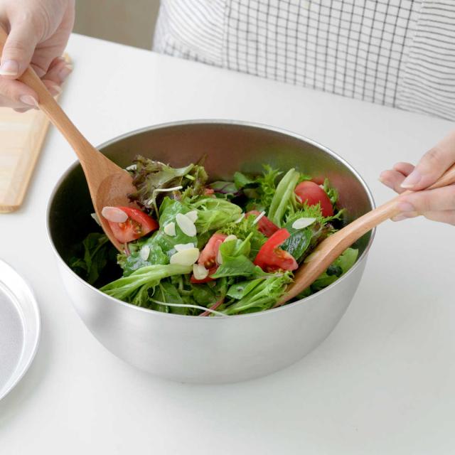 どっしりとした丸みのある形は、食材がたっぷり入り、混ぜる時にもこぼれにくい形状になっています。サラダ作りや和え物など、日頃の料理も楽しく捗ります。