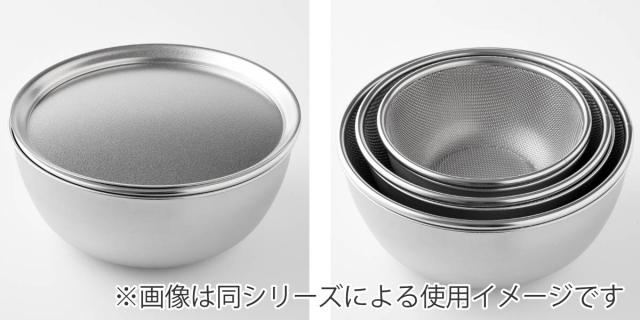 ●別売りの21cmのステンレスザルがボウルにぴったり収まります。