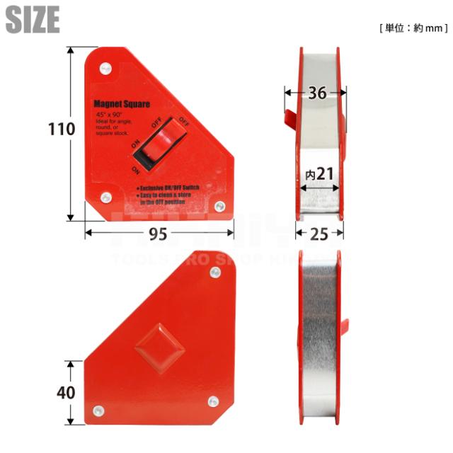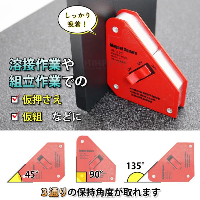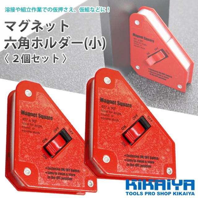 マグネットホルダー 六角ホルダー 小 2個セット レッド 溶接ホルダー ON/OFF スイッチ付 吸着力133N 溶接 マグネット 溶接補助 磁石 KIKAIYA